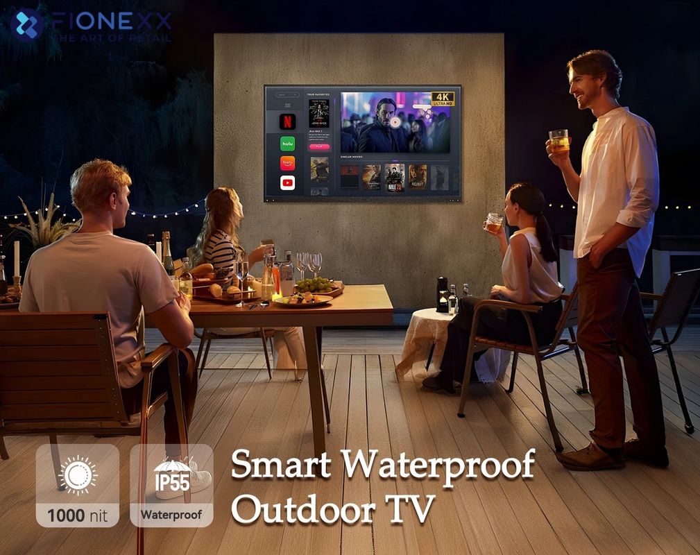 3.Google Smart Outdoor TV: Upgrade naar Google TV met deze buitentelevisie en verbeter uw slimme ervaring. Krijg toegang tot onbeperkte apps, geniet van ondersteuning voor stemassistenten, volglijstfuncties en naadloos schakelen tussen accounts. Navigeer door een gestroomlijnde interface voor moeiteloze bediening.